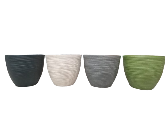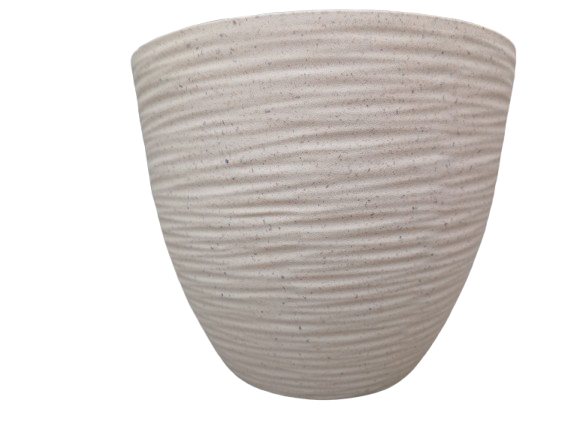 Imaju UV stabilnost tako da boje neće bledeti na suncu i saksija će ostati lepa dugo godina. Izdaleka deluju kao da su jednobojne ali kada se priblizite primetićete da su protkane sitnim nitima koje daju saksijama moderan i nesvakidašnji izgled. Ima drenazu na dnu, nema podmetac.